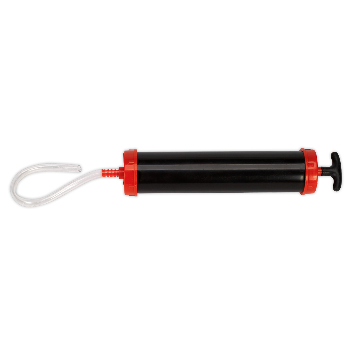 Single action plastic bodied suction tube with T-bar type plunger. Ideal for use on vehicles and machinery for removing oil from gearboxes and differentials. Supplied with 300mm transparent flexible suction hose with Ø10mm bore.