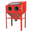 • Heavy gauntlets provide hand protection and cabinet is supplied with sand blasting gun, four ceramic nozzles and five visor covers.