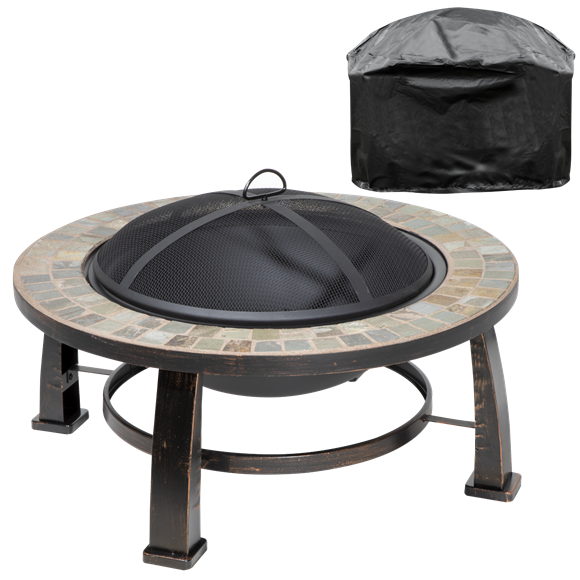 Sealey | Dellonda 30" Deluxe Traditional Style Fire Pit, Fireplace, Outdoor Heater with Fire Poker , Safety Mesh Screen & Drawstring Cover - Slate Top - DG240 21.0 kg