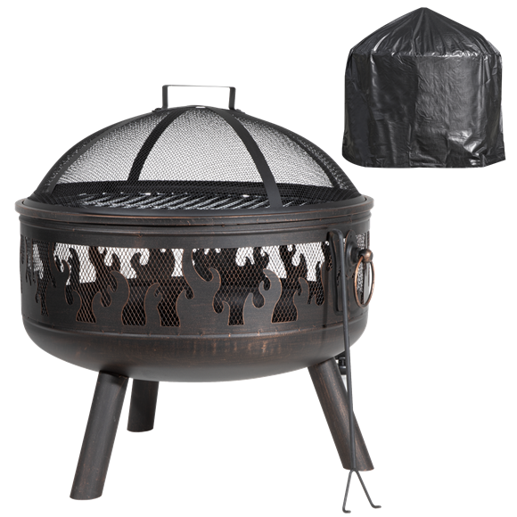 This stylish looking round fire pit with an outer circle of tiles is perfect for enjoying time at home with friends and family while on your patio. 2-in-1 Fire pit supplied with a galvanized grill giving the option of an al fresco dining experience. Includes mesh safety screen to prevent embers and sparks flying. Suitable for use with untreated wood and logs. Ready to go in no time with easy and simply assembly, letting you spend more time to enjoy your firepit and less time setting it up. Supplied with PVC, water-resistant drawstring cover and fire poker. Dimensions: Assembled (Ø x H): 610 x 650mm, Cover (D x H): 710 x 450mm, Bowl Depth: 24".