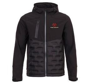 This 320gsm softshell jacket is crafted from a high-performance blend of 94% polyester and 6% elastane. It includes a water-resistant TPU membrane rated to 8000mm, breathable performance to 1000mvp, 200gsm Thermofort padding for warmth, and waterproof zips for added protection. The adjustable hood offers additional coverage in changing weather.