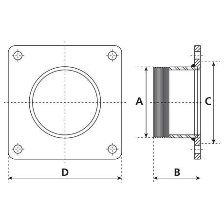 Square Flange with Thread 4'' BSPT (100mm) (Galvanised) - S.103085