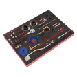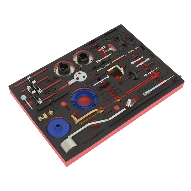 Master timing tool kit for Ford vehicles. Covers a wide range of petrol and diesel engines from 1.0 to 3.2. Suitable for popular Ford vehicles from 1993 to present. Supplied in a high quality storage foam suitable for toolbox drawers. Foam size 560 x 390 x 45mm.