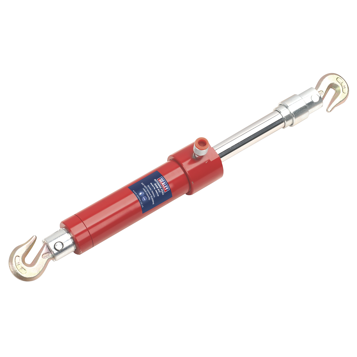 Spring-return pull ram. Suitable for use with manual or air powered hydraulic pumps. Supplied with two chain hooks.