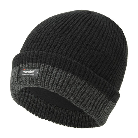 Thinsulate 2-Tone Ribbed Ski Hat – Warm & Insulated | Black