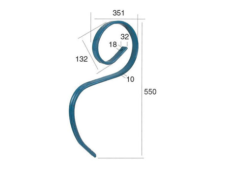 Pigtail tine - 35x35x580 RH | Sparex Part No.S.78691