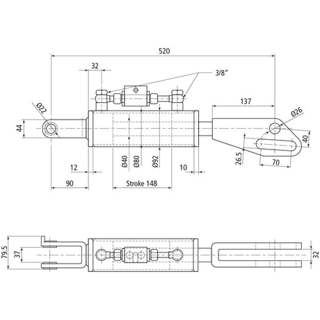 Hydraulic Levelling Box with Hoses, Fork Hole Ø 25mm/26mm | S.173534